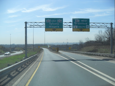 Crossing Grand Island toward Canada with the sun rising.